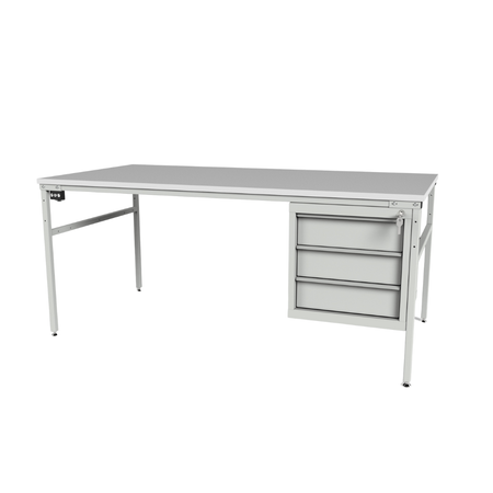 The ESD workbench is a basic, universal workstation designed for use in ESD-protected areas, including electronics manufacturing, assembly, and service environments. All structural and functional components are designed to dissipate electrostatic charges in accordance with ESD workplace requirements.
