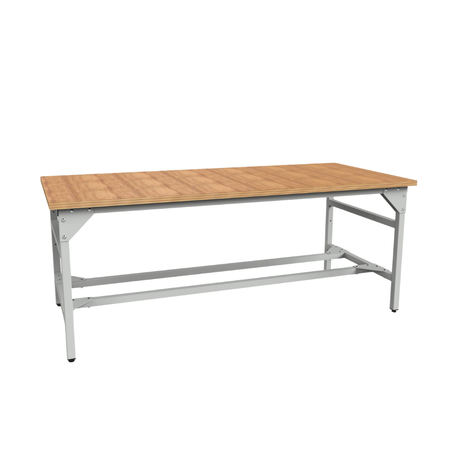 The worktop is manufactured from 30 mm thick hardwood plywood, surface-finished with clear varnish. The combined structure provides a maximum load capacity of 500 kg, assuming uniform load distribution. The modular design allows the workbench to be equipped with a wide range of optional accessories.