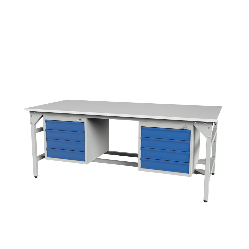 Heavy Duty Storage Workbench 2000/1500 x 900 – With Two Storage Cabinets - Laminated Board Top Table