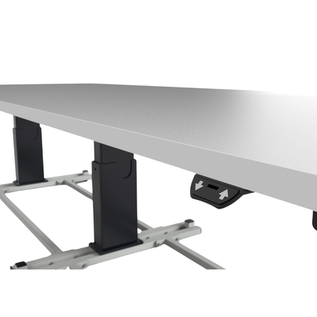 The Electric Height adjustable assembly table is an ergonomic and versatile workstation designed for assembly and production tasks requiring frequent height adjustment. The table is supported by three electrically driven columns, enabling fast and precise height positioning. The structure is manufactured from steel profiles and reinforced with a rear impact-protection bar. All steel elements are powder-coated in RAL 7035 (light grey).