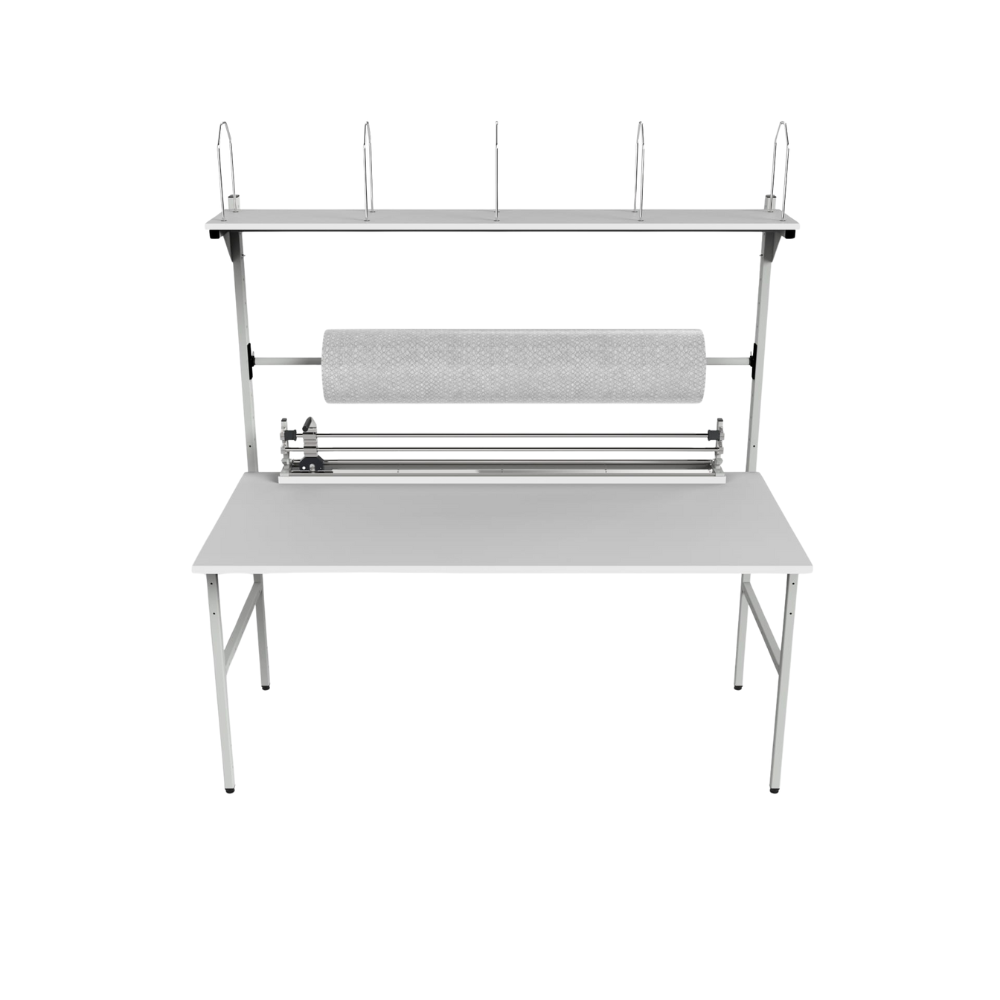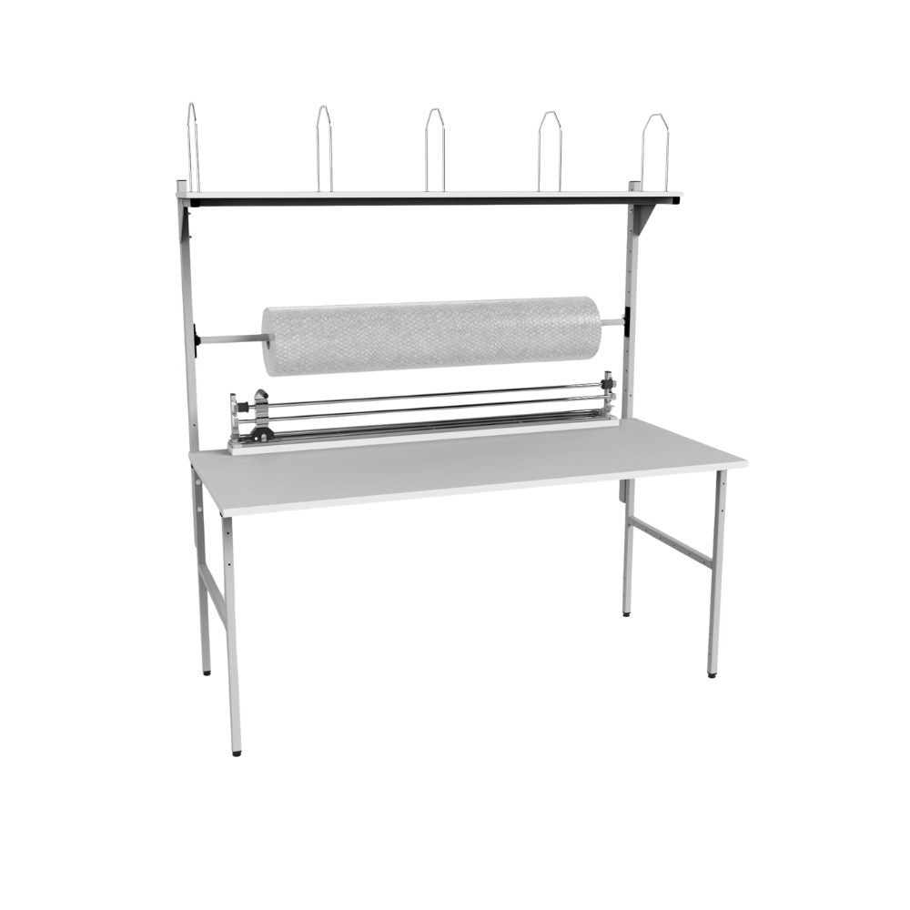 Packaging Workstation with Roller, Shelf & Cutter – Workshop Packing Table